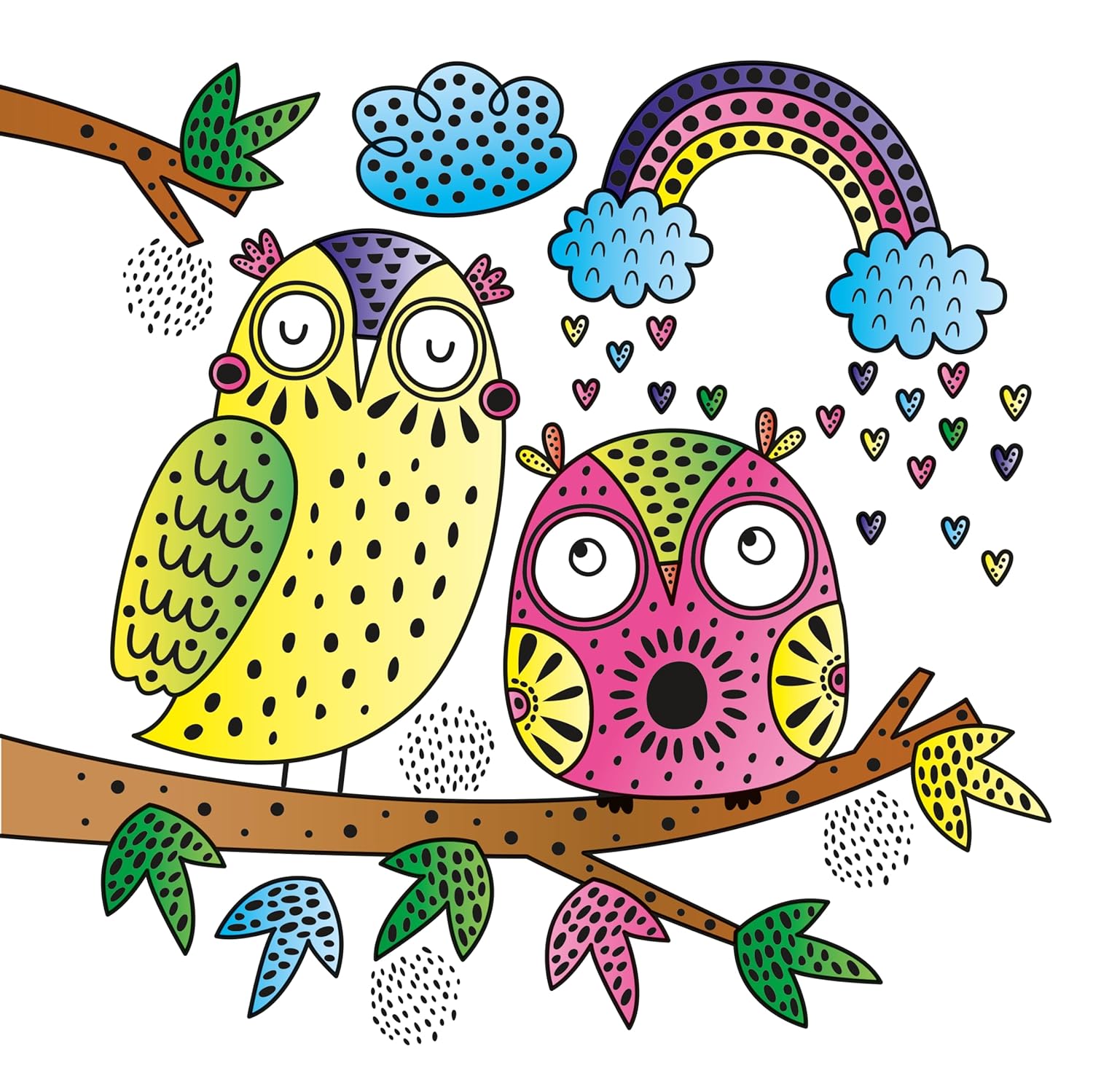 Using a wet brush, paint over the existing colours and watch as they magically turn into different colours creating a brilliantly bright picture.